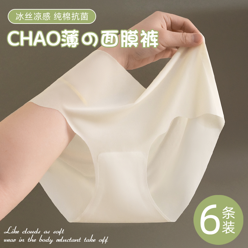 【产品名称:冰丝内裤女士纯棉全棉裆抗菌无痕少女生面膜健身三角短裤夏季薄款】