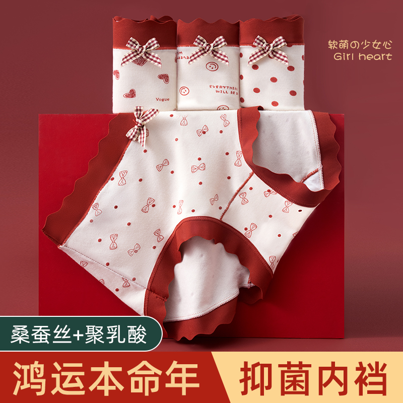 【产品名称:红色内裤女士抗菌裆无痕中腰日系少女生本命年三角短裤秋冬季新款】