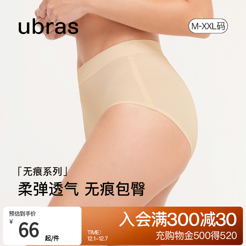 【产品名称:ubras弹弹柔纱亲肤轻薄透气纯棉底裆无痕中腰三角裤内裤女1/2条装】