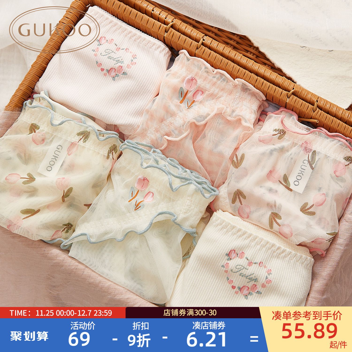 【产品名称:果壳女生内裤郁金香薄纱少女低腰抑菌纯棉裆底3条装女士包臀内裤】