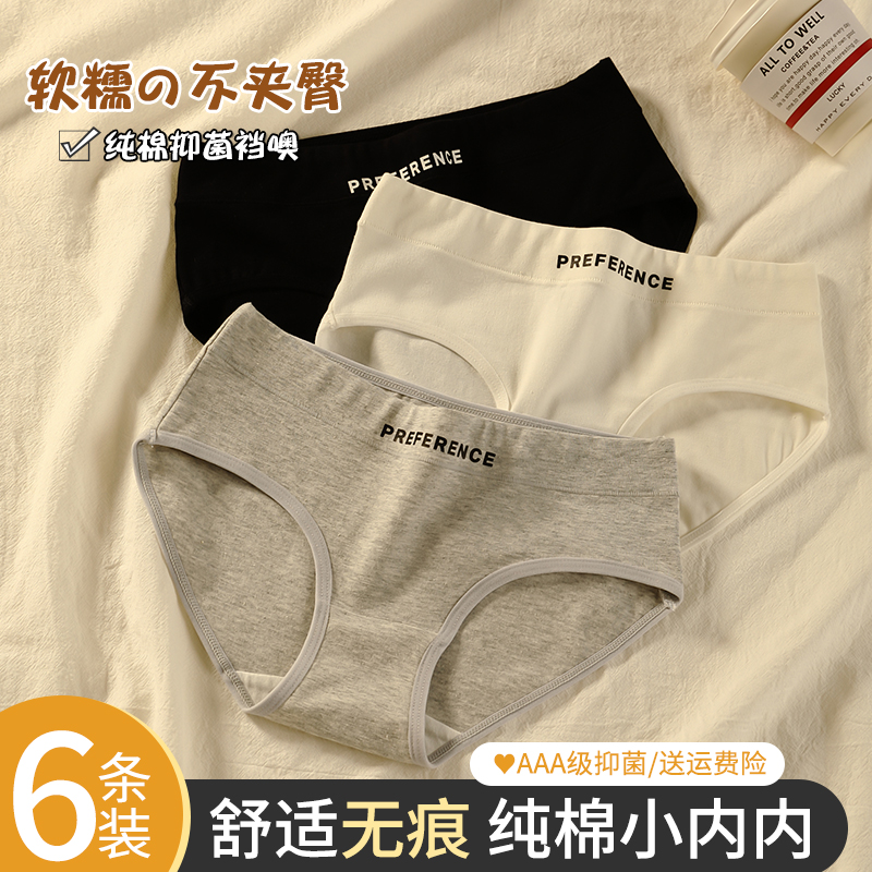 【产品名称:内裤女生纯棉抗菌2023新款无痕运动透气全棉裆短裤中腰女士三角裤】
