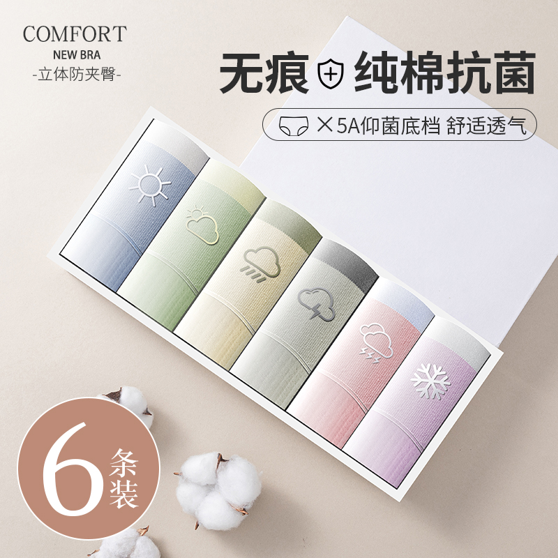【产品名称:2023新款内裤女士纯棉抗菌全棉裆舒适透气无痕中腰可爱少女生短裤】
