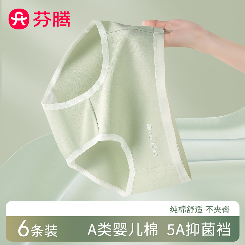 【产品名称:芬腾女士内裤女2023新款纯棉抗菌全棉裆中腰少女三角无痕大码短裤】