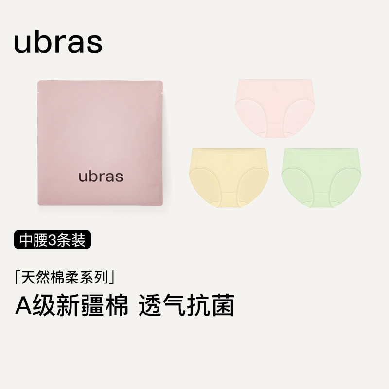 【产品名称:ubras纯棉女抗菌底裆无痕中高腰内裤3条装】