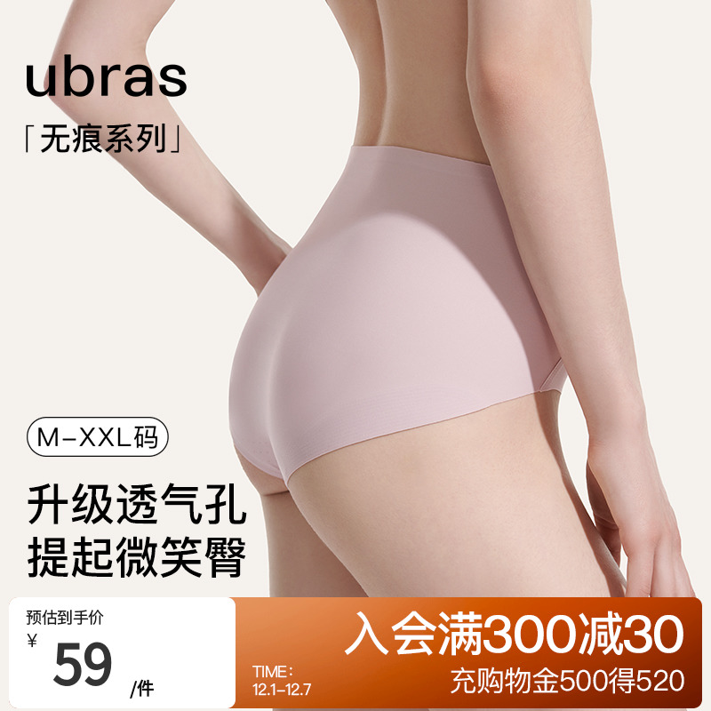 【产品名称:ubras秋季新款纯棉5A抗菌冲孔底裆内裤不夹臀无痕中腰单条三角裤】