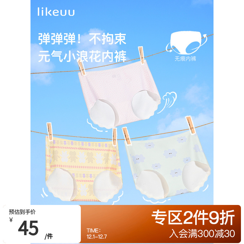 【产品名称:ubras旗下likeuu少女无尺码小小浪花内裤女童青春发育期抗菌内裤】