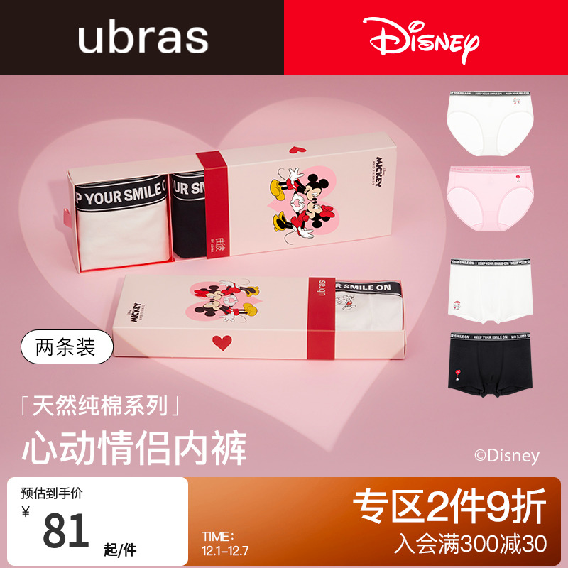 【产品名称:ubras迪士尼限定联名米奇米妮纯棉情侣内裤女男情人节送礼盒】