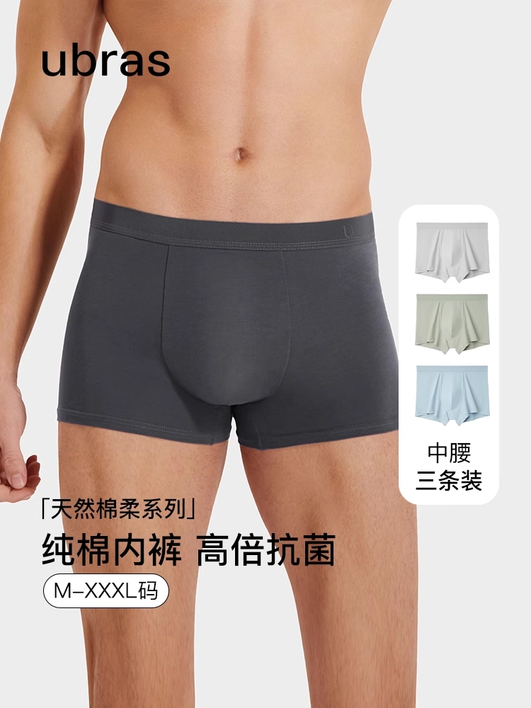 【产品名称:ubras50S纯棉抗菌透气裆男士内裤3条装II】