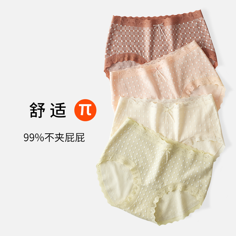 【产品名称:内裤女纯棉全棉裆蕾丝边高腰轻收腹女士无痕性感新款三角短裤少女】