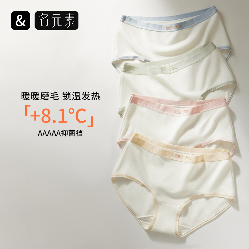 【产品名称:名元素【+°C暖暖裤】内裤女士2023新款中腰桑蚕丝裆女生三角短裤】