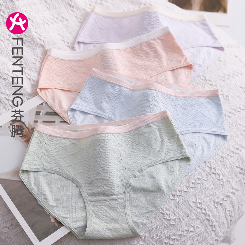 【产品名称:芬腾内裤女纯棉抗菌少女提花中腰全棉裆女士底裤学生甜美三角裤头】