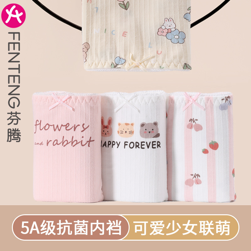 【产品名称:芬腾女士内裤纯棉抗菌全棉少女生可爱卡通学生夏季短裤头三角裤衩】