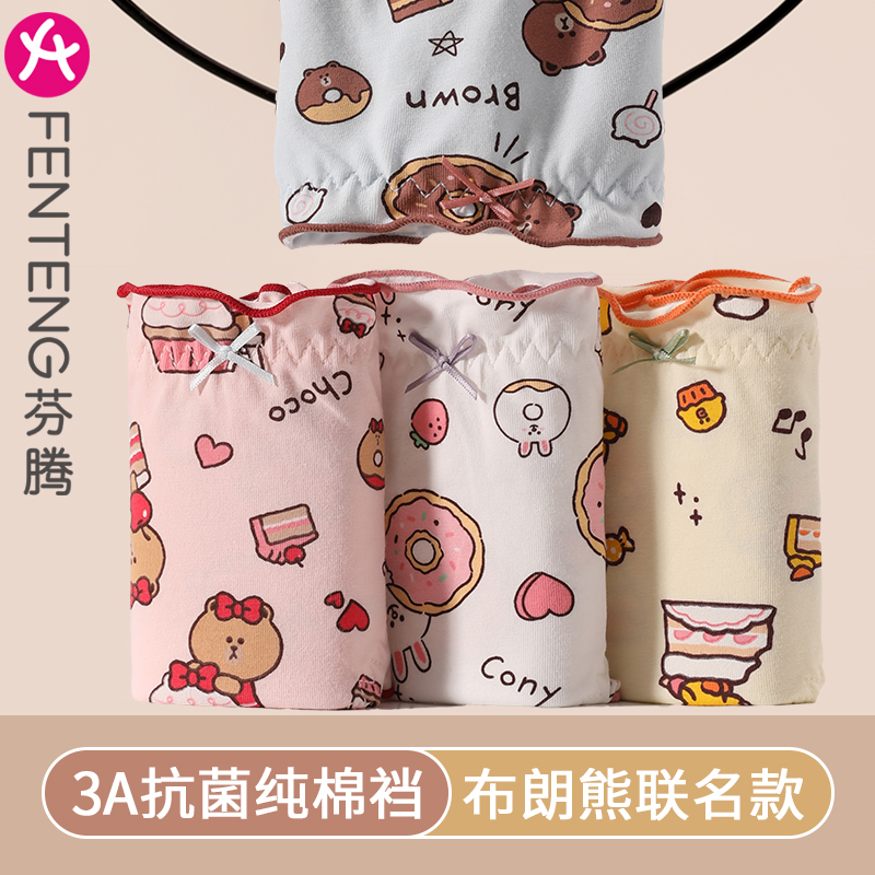 【产品名称:芬腾中腰内裤女纯棉抗菌裆少女甜美短裤可爱全棉女士大码三角裤头】