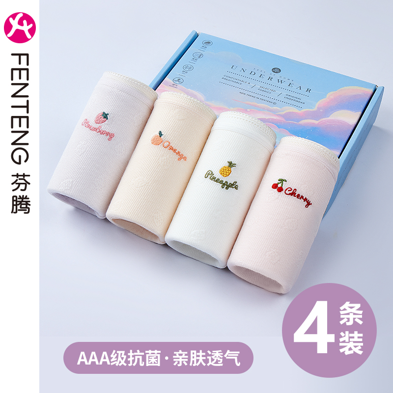 【产品名称:芬腾女士内裤抗菌中腰女生可爱卡通学生夏季透气薄款三角裤短裤头】