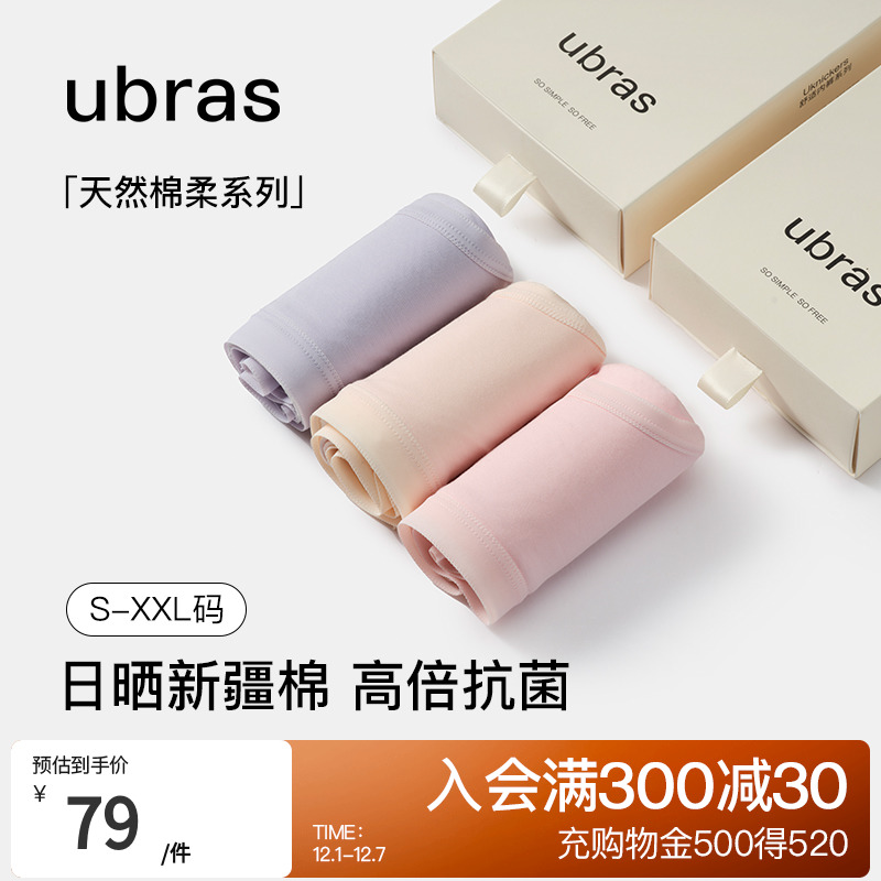 【产品名称:ubras纯棉内裤全棉抗菌底裆无痕透气中高腰三角短裤内裤女3条装】