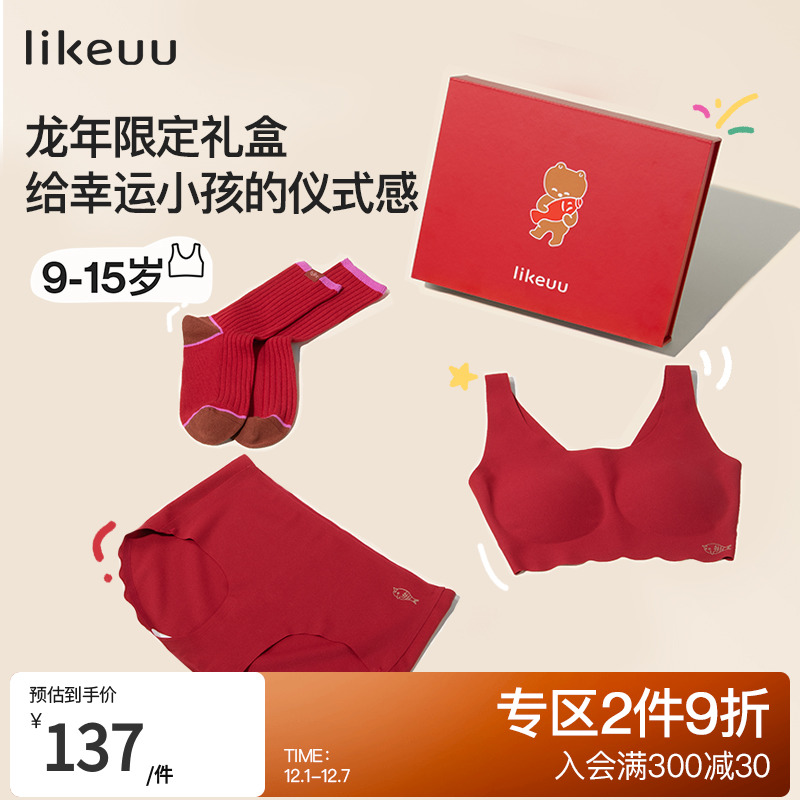 【产品名称:ubras旗下likeuu少女红色内衣内裤礼盒文胸套装儿童本命年礼物】