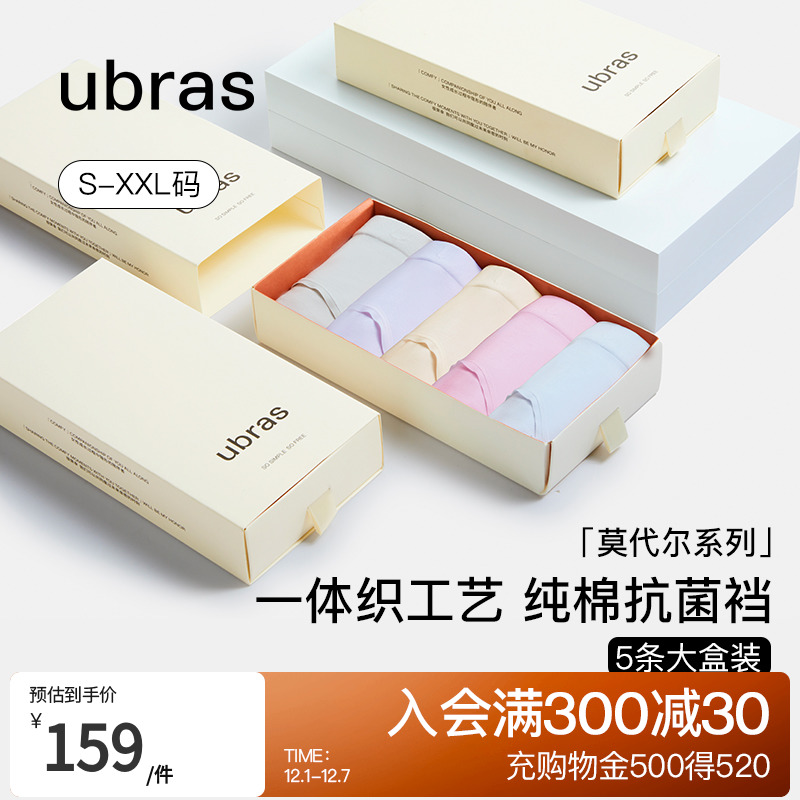 【产品名称:ubras莫代尔女士内裤纯棉抗菌裆透气无痕三角内裤女短裤5条装】
