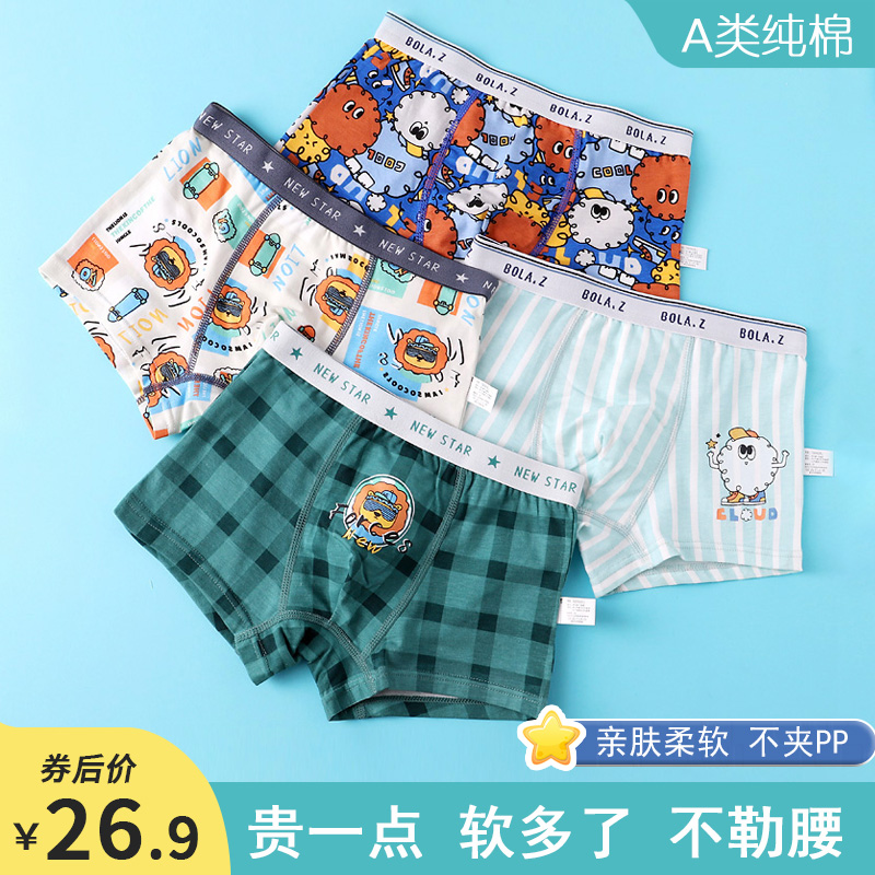 【产品名称:儿童纯棉内裤男童平角裤全棉宝宝男孩小童中大童12四角裤短裤100%】