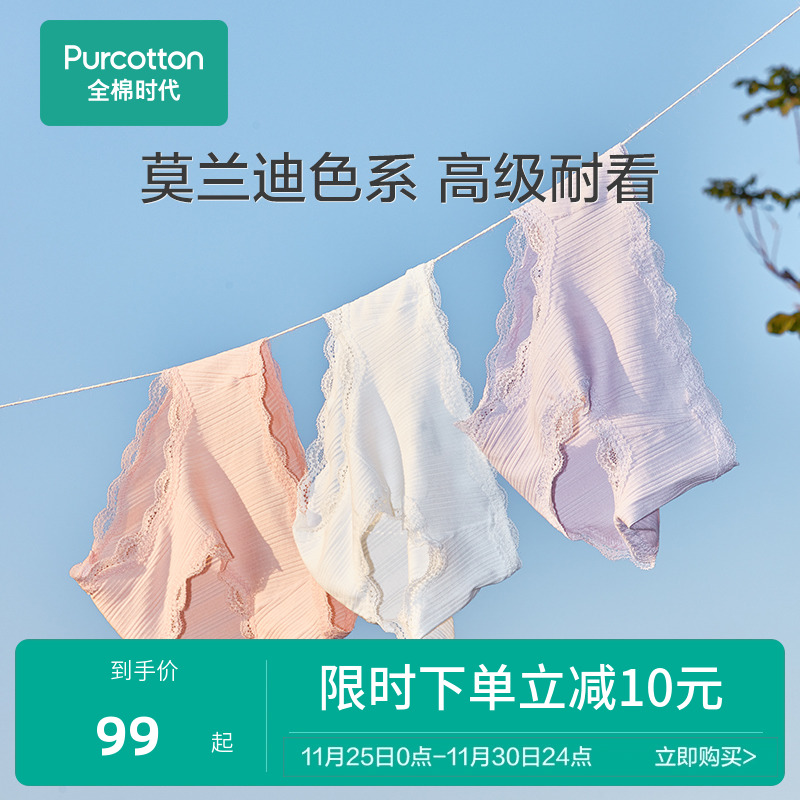 【产品名称:全棉时代罗纹蕾丝女士内裤纯棉收腹中腰女生少女透气三角裤头薄款】