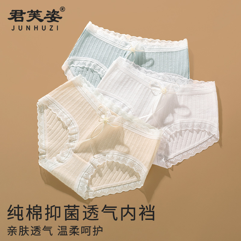 【产品名称:女生内裤纯棉抗菌全棉裆中腰无痕少女士蕾丝纯欲日系透气三角短裤】