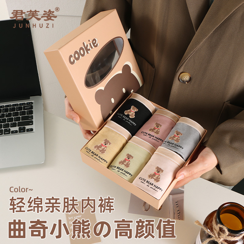 【产品名称:内裤女生纯棉抗菌裆透气可爱少女生中腰礼物盒装大码胖MM三角短裤】