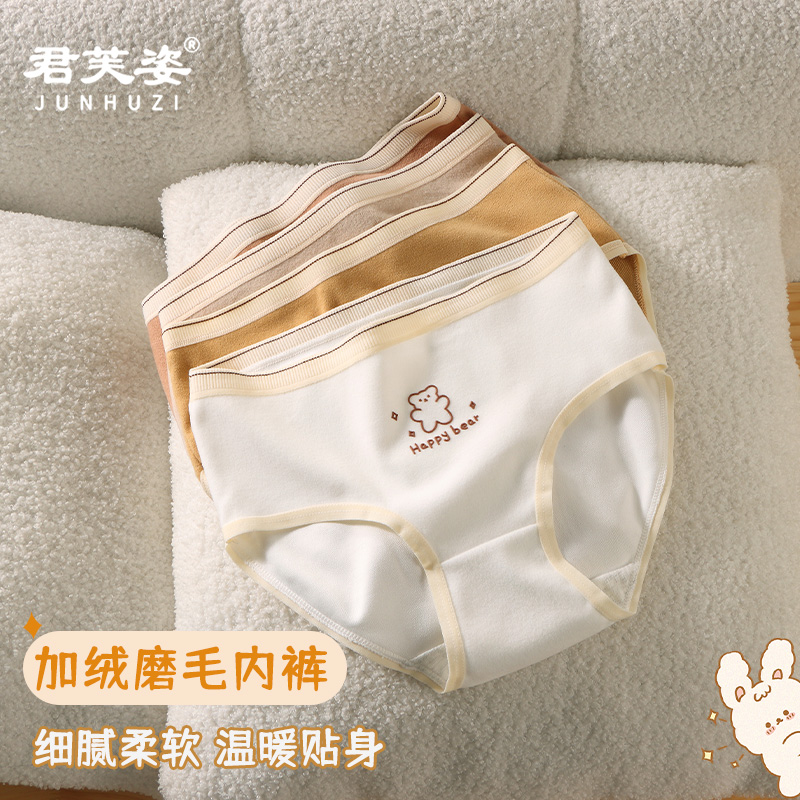 【产品名称:女士内裤全棉抗菌纯棉秋冬德加绒磨毛保暖少女生暖宫中腰三角短裤】