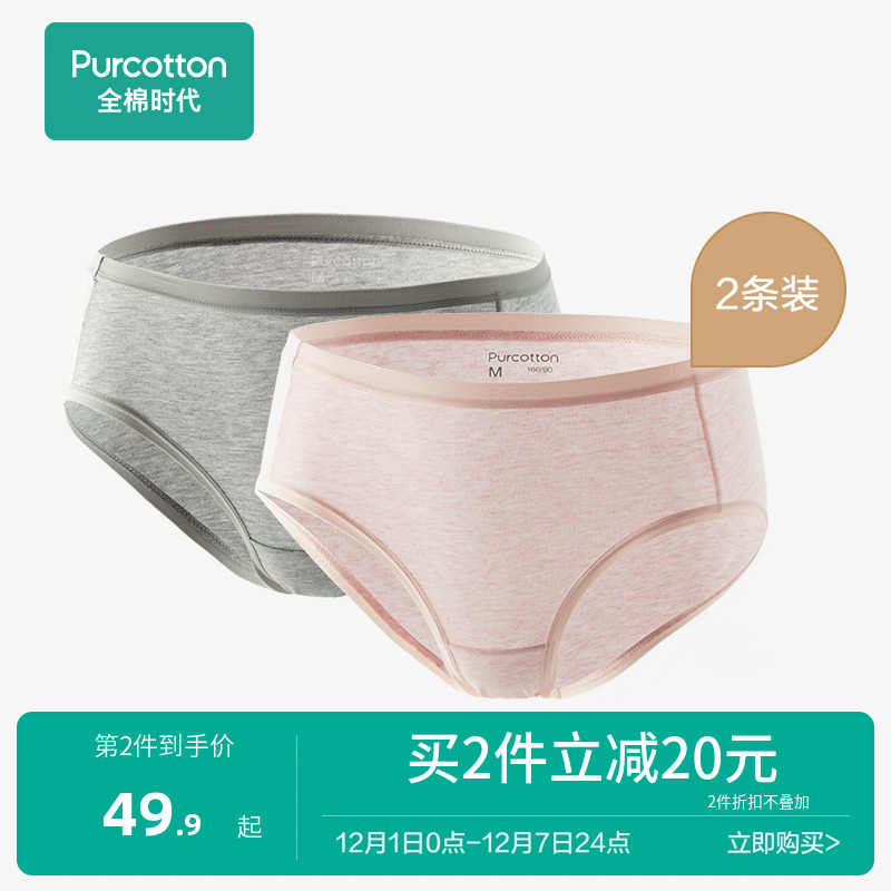 【产品名称:全棉时代女士女生中腰三角内裤纯棉舒适透气收腹薄款2条装】