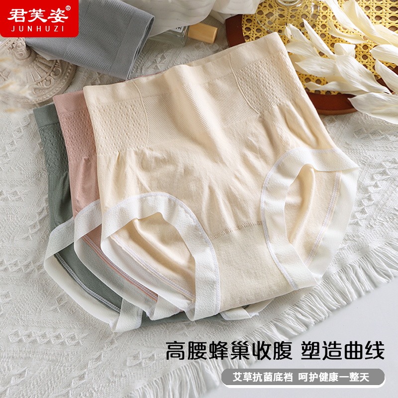 【产品名称:高腰内裤女艾草抗菌裆收腹提臀收小肚子无痕胖MM高弹女士大码短裤】