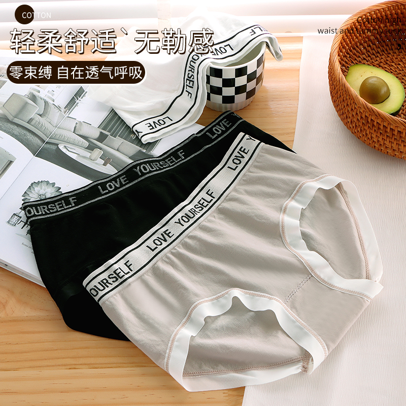【产品名称:内裤女纯棉抗菌全棉裆运动字母透气包臀少女生中腰无痕女士三角裤】