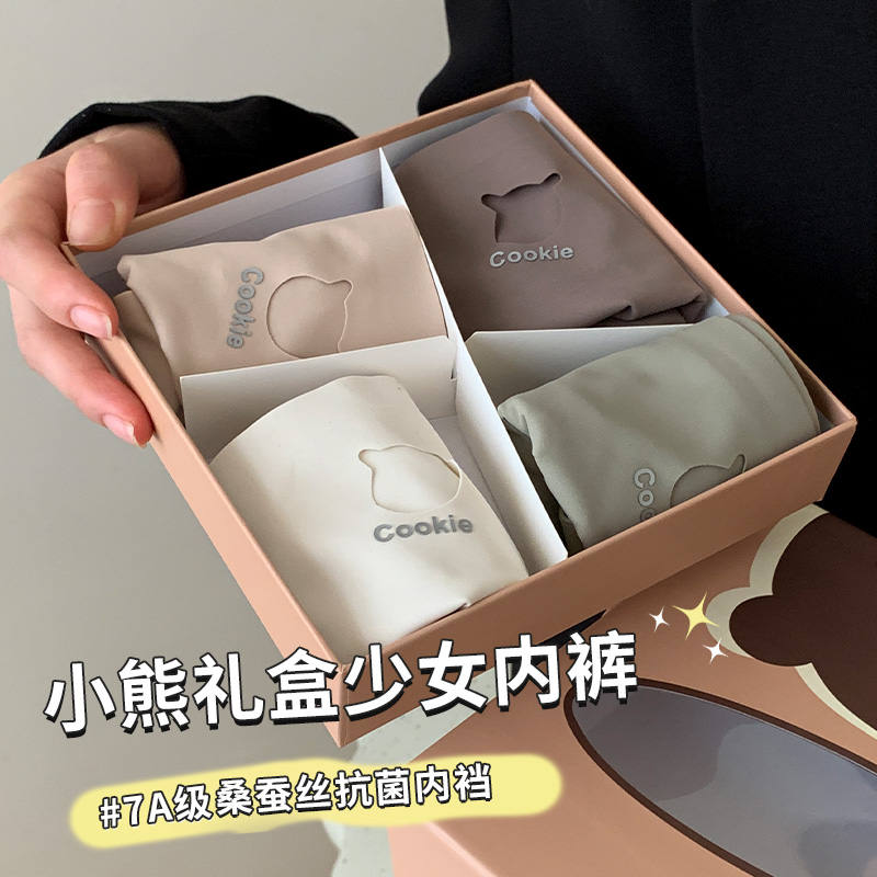 【产品名称:无痕内裤女生纯棉抗菌裆中腰健身运动可爱礼盒装女士蚕丝三角裤头】