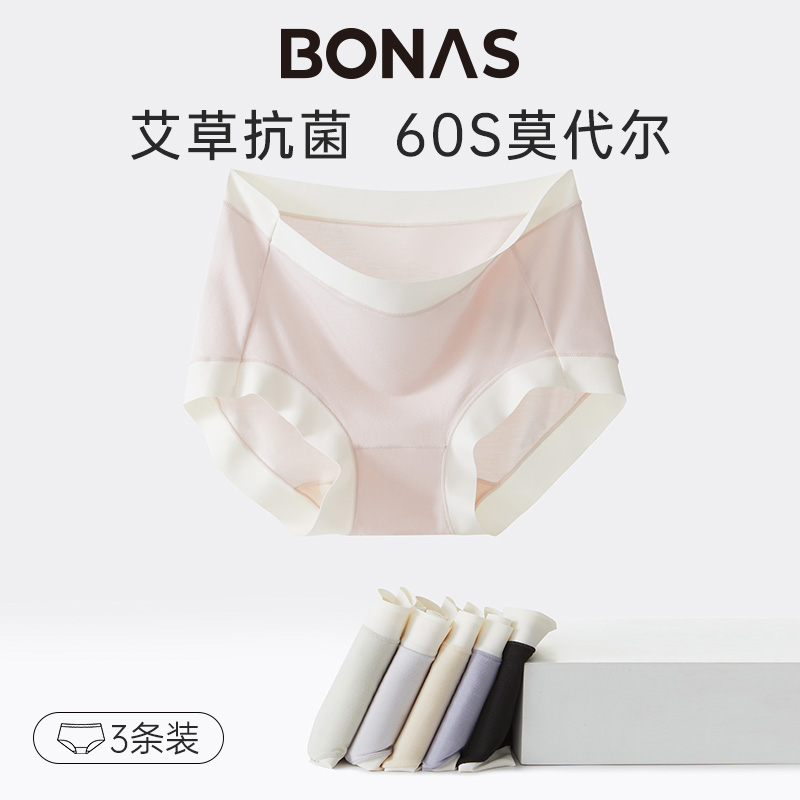【产品名称:3条平角裤莫代尔无痕舒适中高腰抗菌透气女士内裤薄少女春夏纯欲】