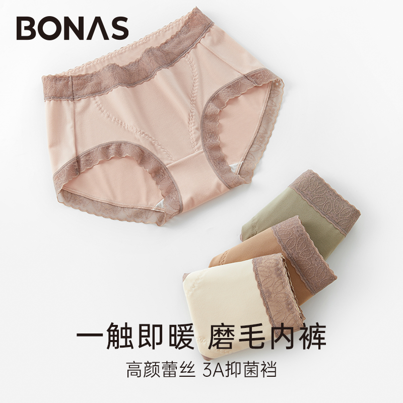 【产品名称:宝娜斯秋冬女士内裤蕾丝纯棉抑菌裆磨毛中腰透气女生三角短裤头】