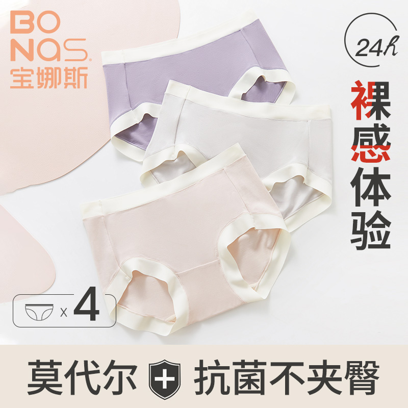 【产品名称:宝娜斯内裤女秋季新款无痕莫代尔中高腰透气抗菌少女平角短裤女士】
