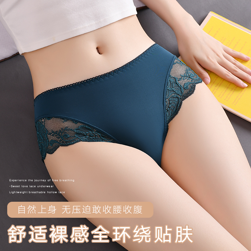 【产品名称:洁韵朵蕾丝内裤女士无痕纯欲低腰冰丝透气薄款大码性感健身短裤夏】
