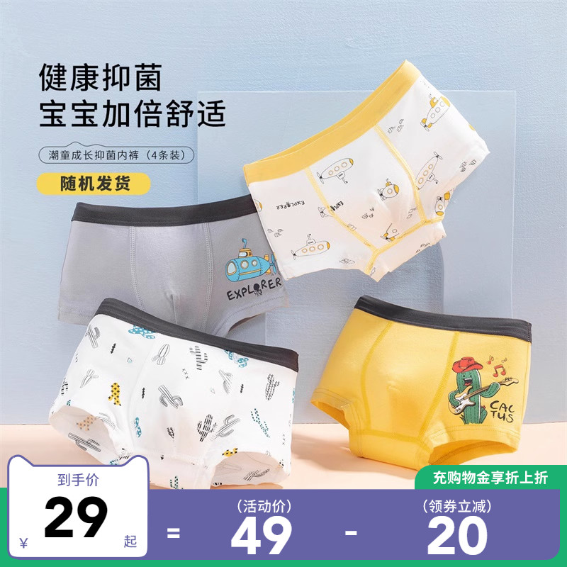 【产品名称:贝贝怡男童四季内裤宝宝居家吸湿排汗舒艾草抑菌透气平角四条装】