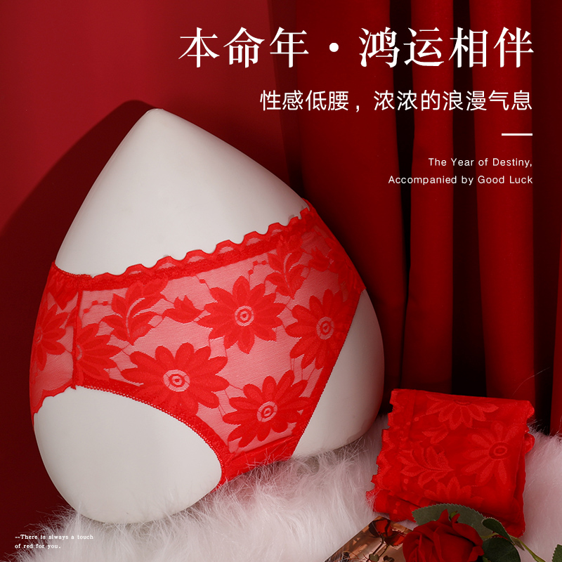 【产品名称:本命年红色蕾丝内裤女士性感低腰纯棉抗菌裆女生结婚礼物兔年短裤】
