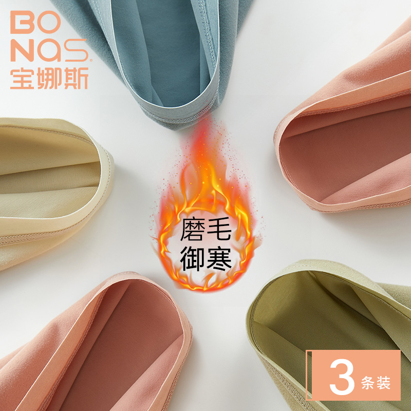【产品名称:宝娜斯秋冬磨毛时尚内裤女细腻无痕抗菌底裆女士纯色三角裤不夹臀】