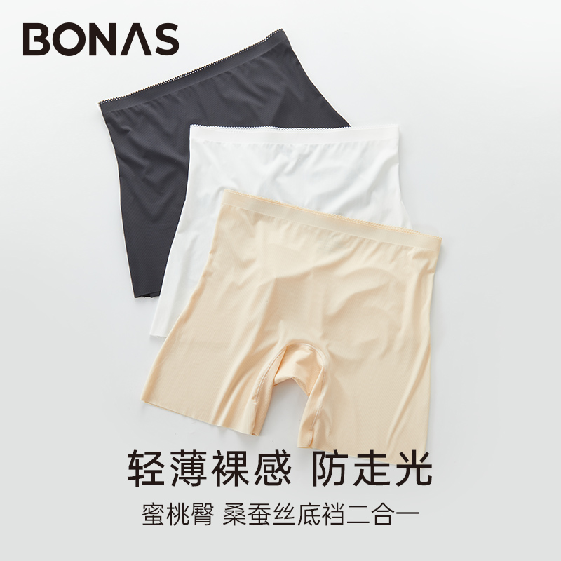 【产品名称:宝娜斯冰丝安全裤女防走光夏季薄款桑蚕丝底档打底裤平角女士内裤】