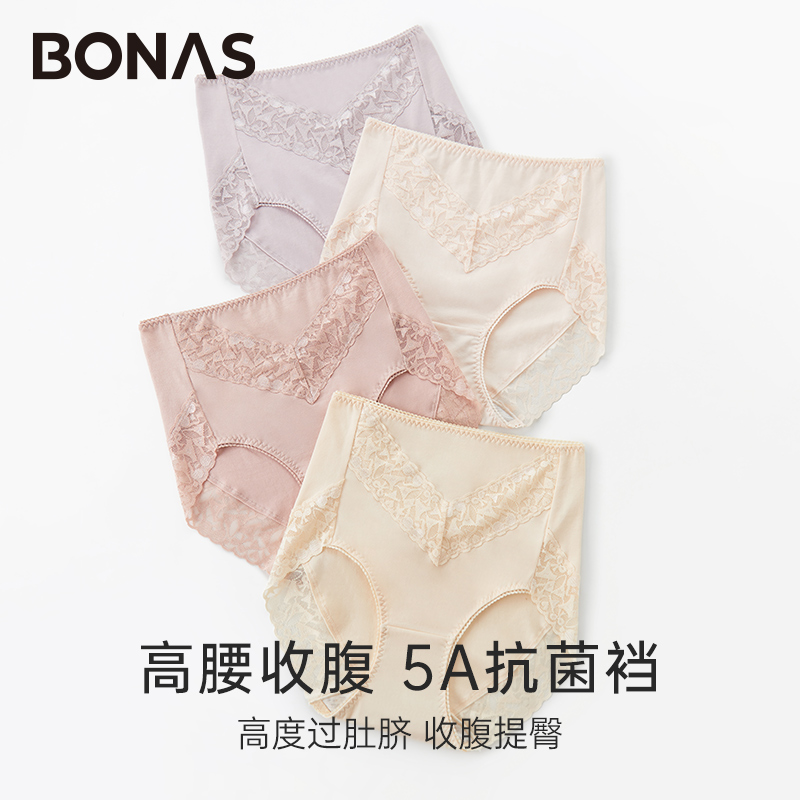 【产品名称:宝娜斯女士全棉内裤高腰收腹提臀大码短裤女生纯棉抗菌裆三角裤】