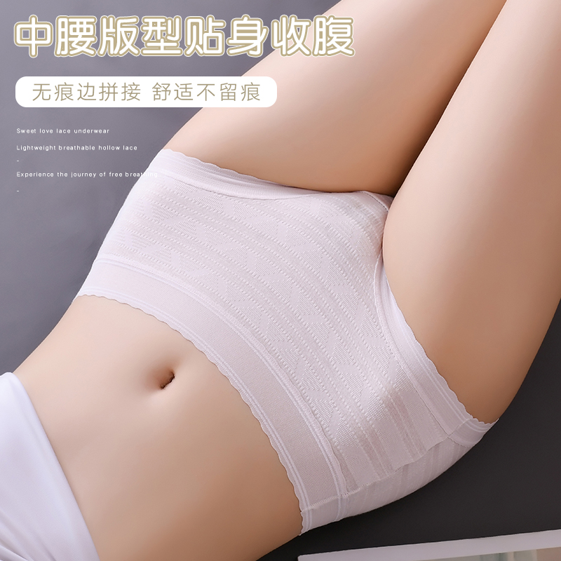【产品名称:洁韵朵内裤女士蕾丝中腰性感无痕纯棉抗菌裆2023新款收小肚子短裤】