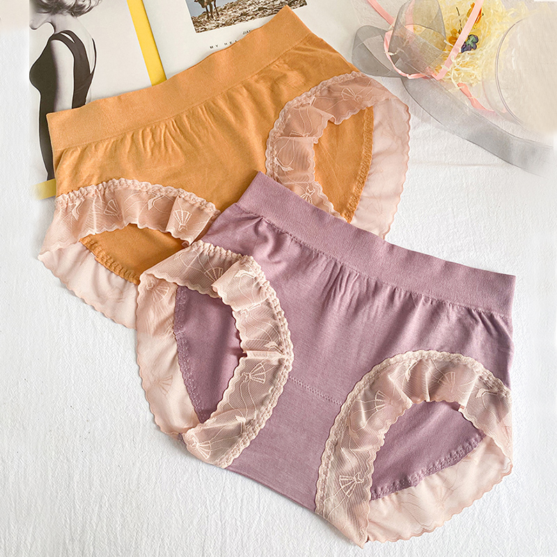 【产品名称:大码内裤女胖mm200斤纯棉中腰女士莫代尔无痕舒适柔软蕾丝三角裤】