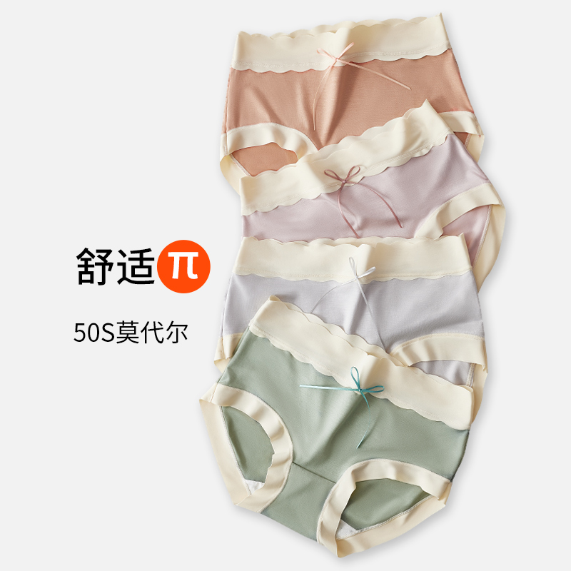【产品名称:名元素【舒适π】内裤女莫代尔无痕纯棉底裆女士中腰夏季薄款短裤】