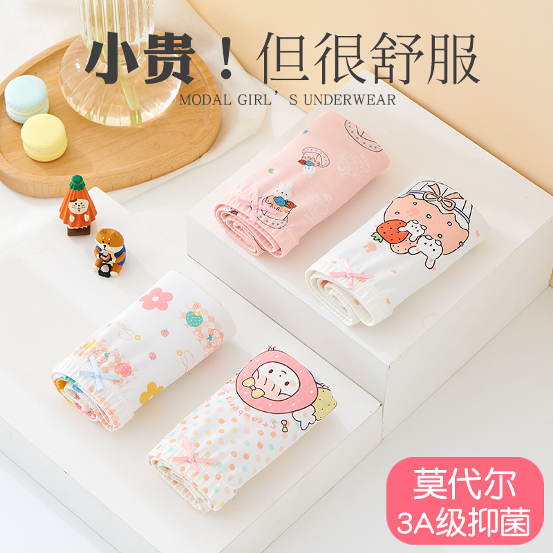 【产品名称:女童内裤莫代尔平角四角短裤儿童纯棉100%全棉宝宝女孩冰丝夏季薄】