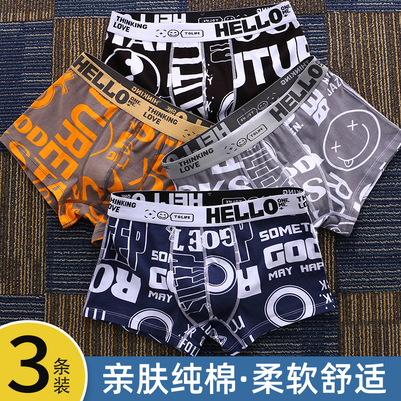 【产品名称:男士内裤男生纯棉四角裤衩男款运动青少年男孩大码潮流平角短裤头】