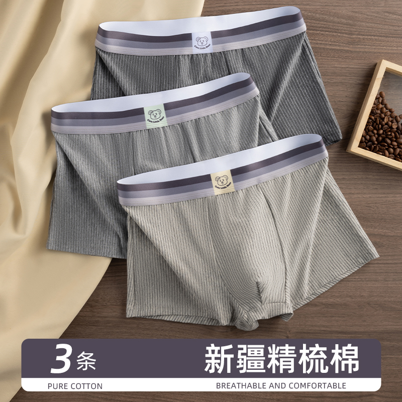 【产品名称:男士内裤男生纯棉四角裤衩男款运动透气青少年潮流平角短裤头新款】