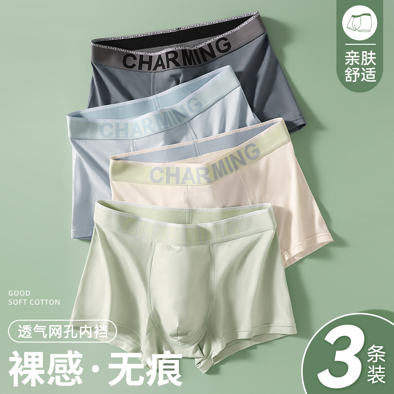【产品名称:莫代尔透气无痕内裤大码男士四角底裤衩青少年男生平角短裤头夏薄】
