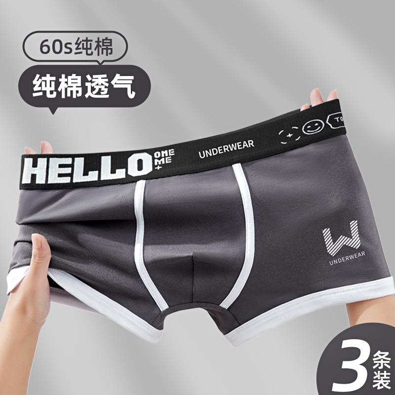 【产品名称:男士内裤男生纯棉四角短裤头男款运动透气平角裤衩青少年潮流新款】