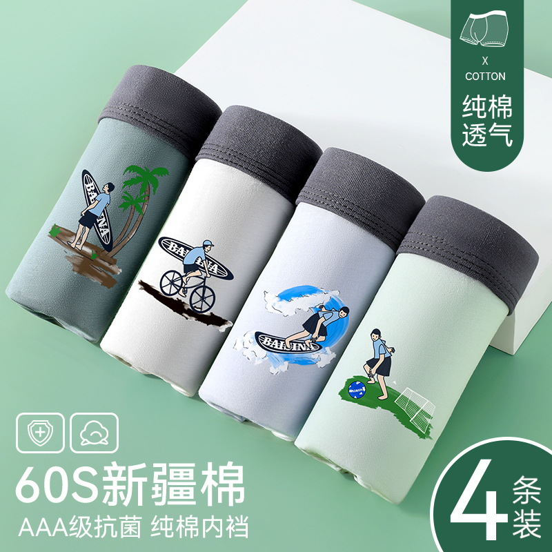 【产品名称:男士内裤男生纯棉抗菌四角底裤男孩运动透气青少年平角短裤头夏薄】