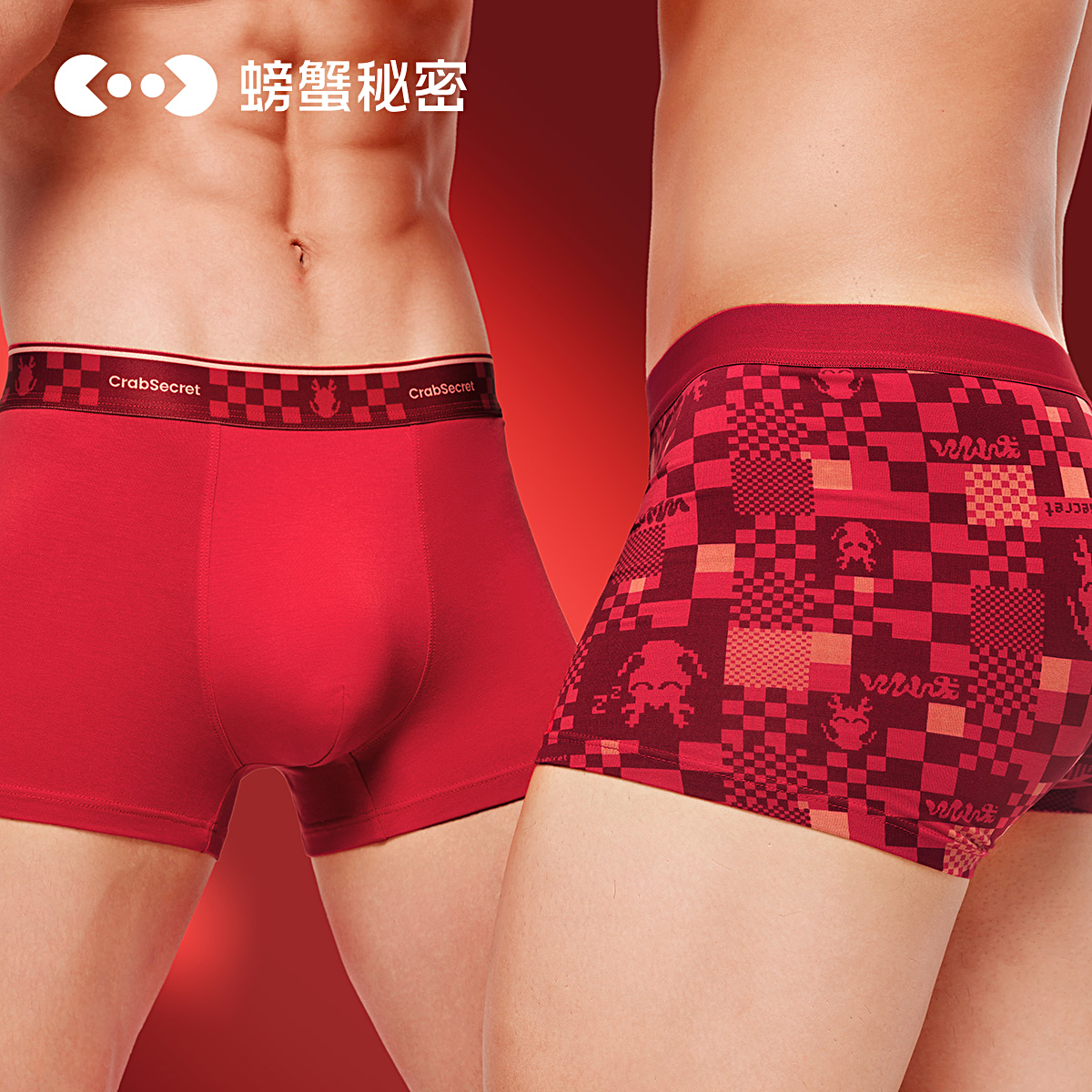 【产品名称:螃蟹秘密内裤男平角红色龙年莫代尔纯棉裆本命年四角结婚短裤男士】