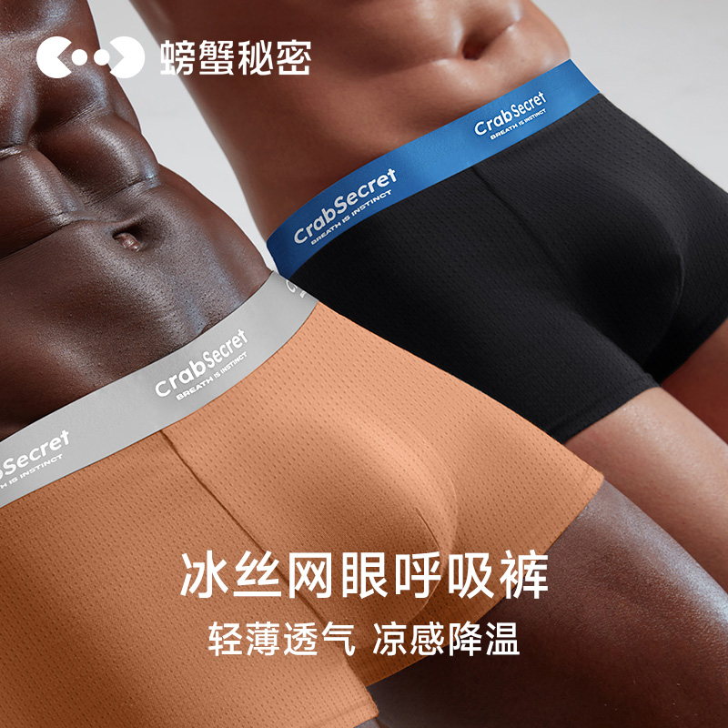 【产品名称:螃蟹秘密男士内裤男生冰丝夏季凉感透气网眼无痕四角短裤头礼盒装】